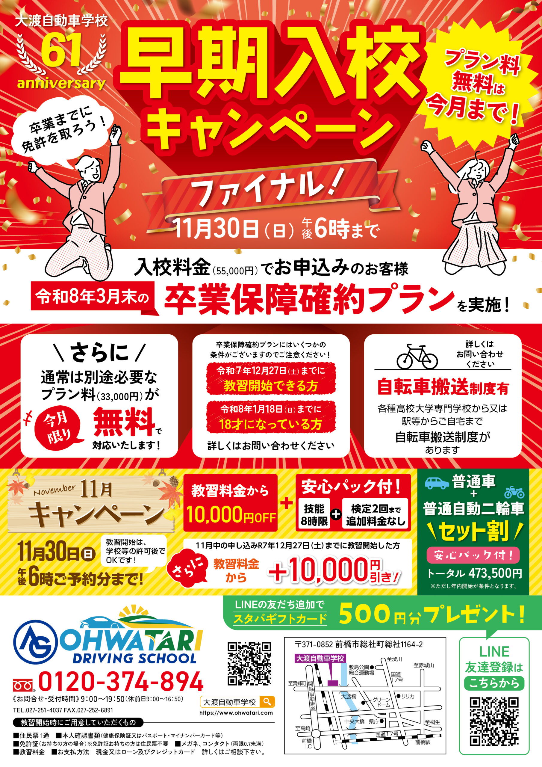 LINE公式アカウントでは、最新キャンペーンや入校までの流れを分か りやすくお届け!在校生は、スケジュール確認や各種予約がLINEで簡 単に!今すぐ友だち追加!
